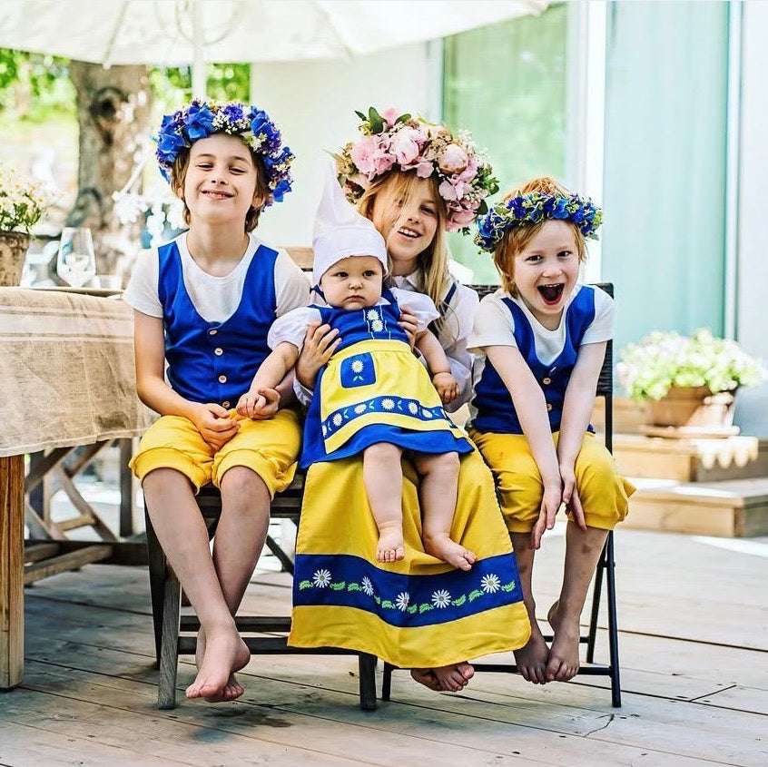 Imagine your little one at their first Midsummer celebration, Swedish National Day, or summer gathering, Proudly dressed in a tiny Swedish national costume that makes everyone smile. It’s charming, nostalgic, and just a little bit iconic. A piece that turns ordinary moments into memorable ones.